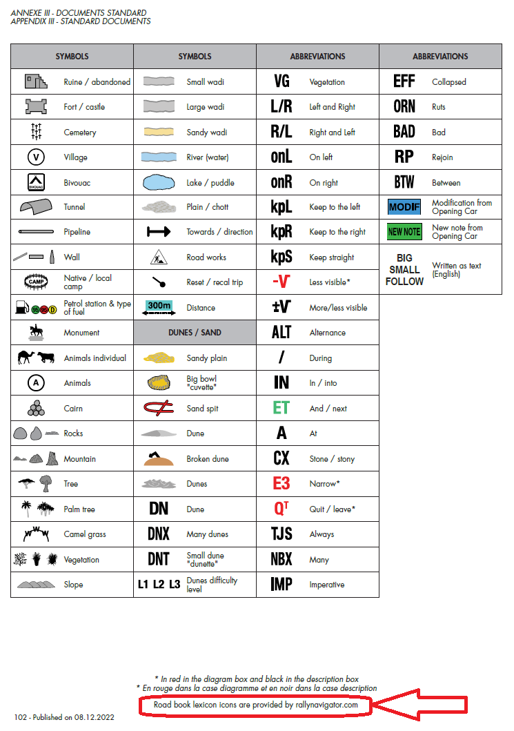 Rally Roadbook Lexicon. What do all those symbols mean??